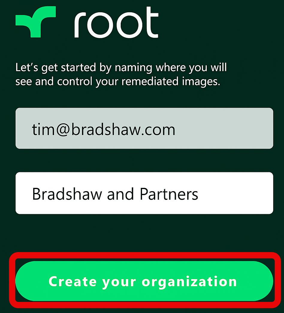 On the next page you will be prompted to enter the name of your organization and click Create your organization.