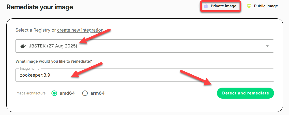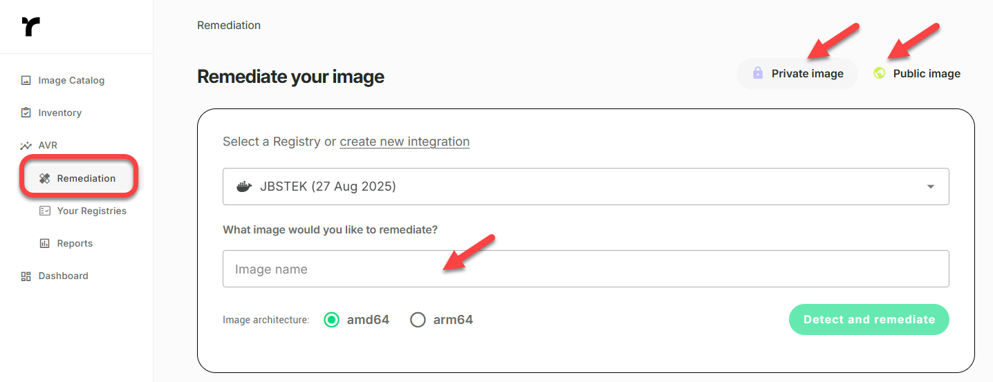 The steps differ slightly depending on whether you are remediating a public image, or one from your private image registry.